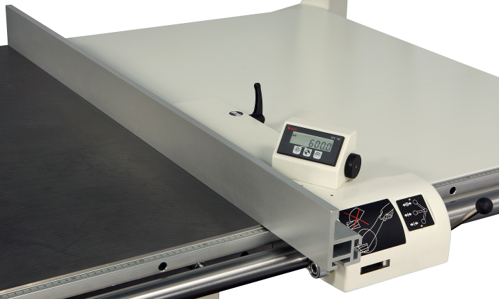 Линейка с 3-мя ЖК датчиками (индикаторами) положения перекидных упоров, каждый упор снабжен системой считывания по магнитной ленте и отображением размеров на индикаторе с ЖК-дисплеем